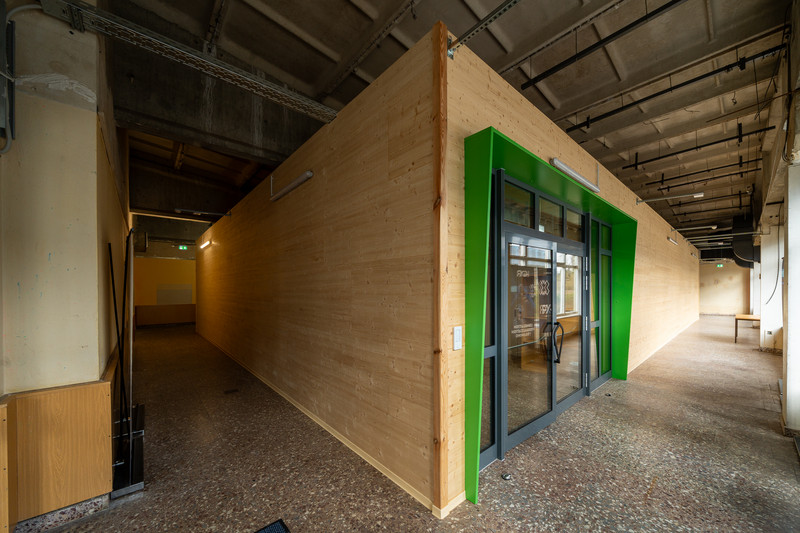 Ein Projektteam des Amts für Immobilien- und Baumanagement in Halberstadt hat die Bauausführung und Umsetzung betreut. Errichtet wurde ein Raum in Holzrahmenbauweise in den Abmessungen von ca. 13m x 18m in einem ehemaligen Speiseraum, der als ergänzende Außenhülle dient. Es handelt sich hierbei um eine „Haus in Haus“ Lösung. Diese ermöglichte eine durchgängig witterungsgeschützte bauliche Umsetzung.