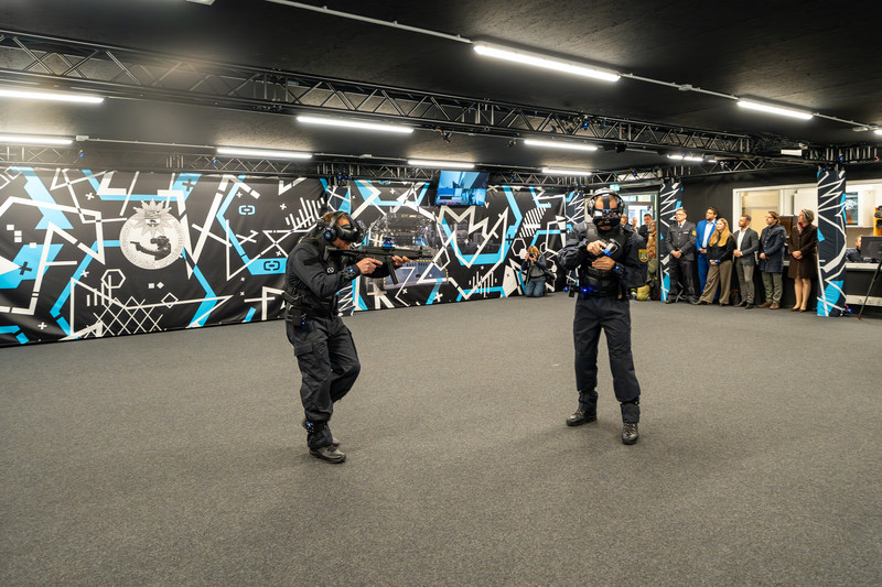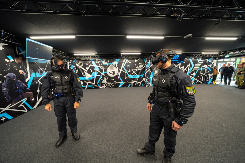 Die moderne VR‑Anlage ist für bis zu vier gleichzeitig agierende Teilnehmende sowie einen Trainer ausgelegt und eignet sich sowohl für Einzeltrainings als auch für realistische, teambasierte taktische Übungen. Der Trainer kann aktiv in das Geschehen eingreifen, etwa in der Rolle eines vermeintlichen Täters, und den Trainingsverlauf flexibel sowie situationsbezogen an die jeweiligen Ausbildungsziele anpassen. Neben der Interaktion mit virtuellen und realen Menschen können realitätsnahe Darstellungen von Topographie und Infrastruktur für taktische und führungsbezogene Anwendungen simuliert werden. Die ersten Erfahrungen der bisherigen Nutzer der Landespolizei fielen durchweg positiv aus.